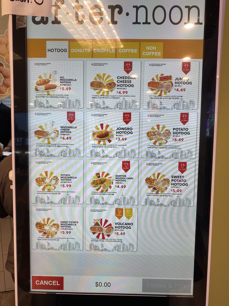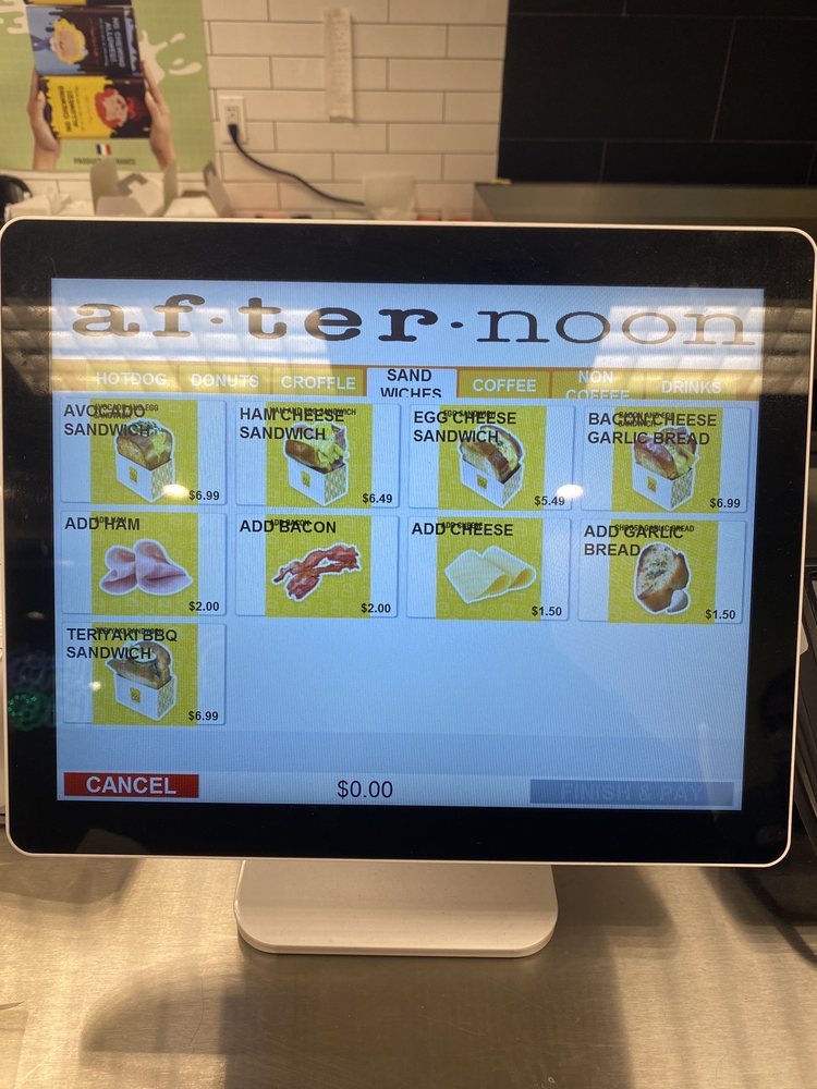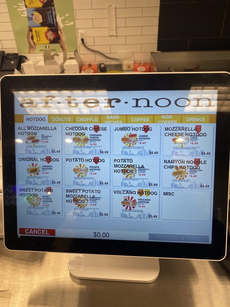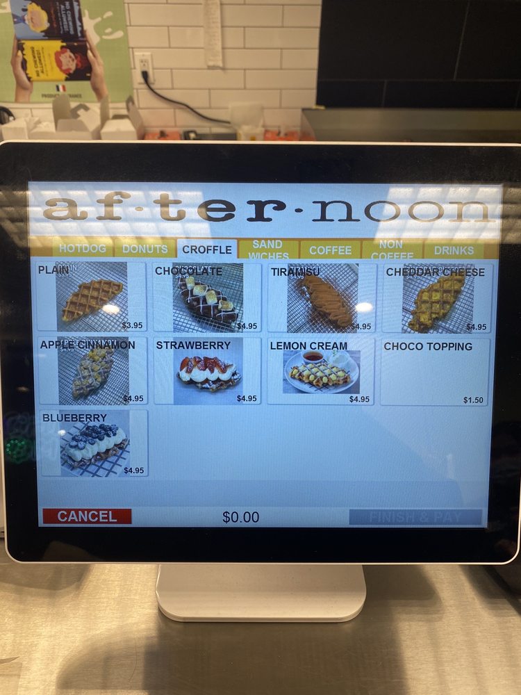 Afternoon - Flushing offers a diverse menu of hot dogs, bakeries, and donuts in a classy setting with moderate noise levels. Located in Flushing, NY, the restaurant provides catering services but does not allow dogs on the premises. The Egg Lab offers delicious options like Bacon Egg and Cheese and Ham Egg and Cheese sandwiches, while the Croffle Haus serves unique croffle flavors such as Tiramisu and Blueberry. Customers have praised the quality of the food, with some favorites being the egg cheese sandwich and mochi donuts. The Tiramisu Croffle stands out for its crispy texture and light cream topping. Overall, Afternoon - Flushing is a must-visit for those looking for a satisfying meal in a clean and friendly environment.